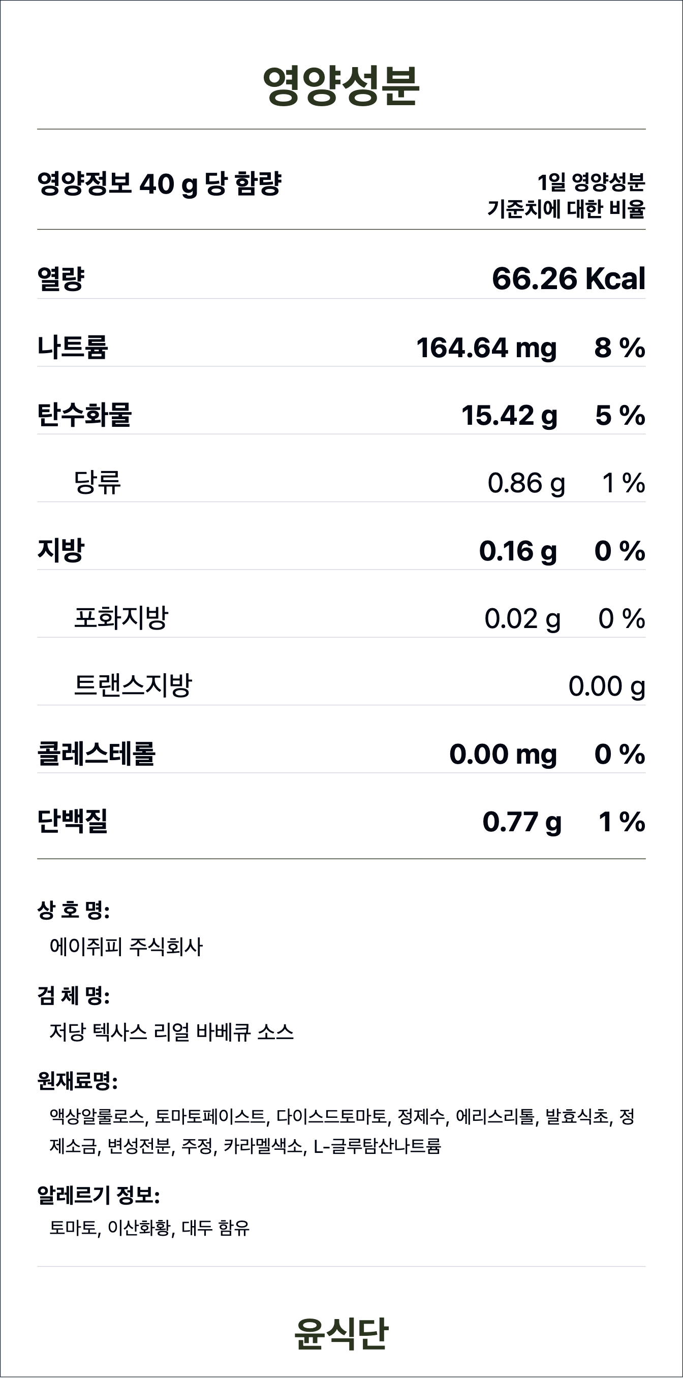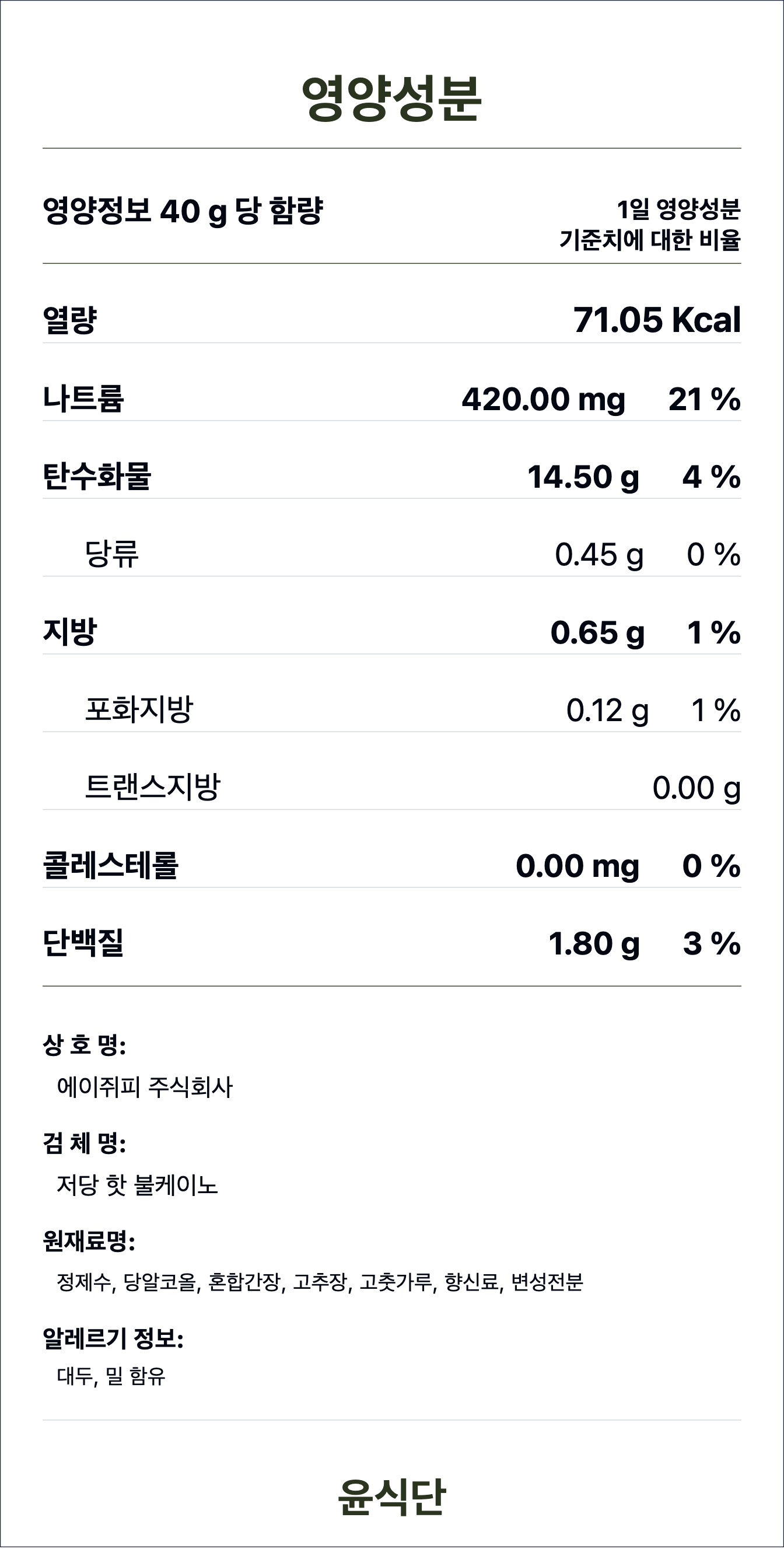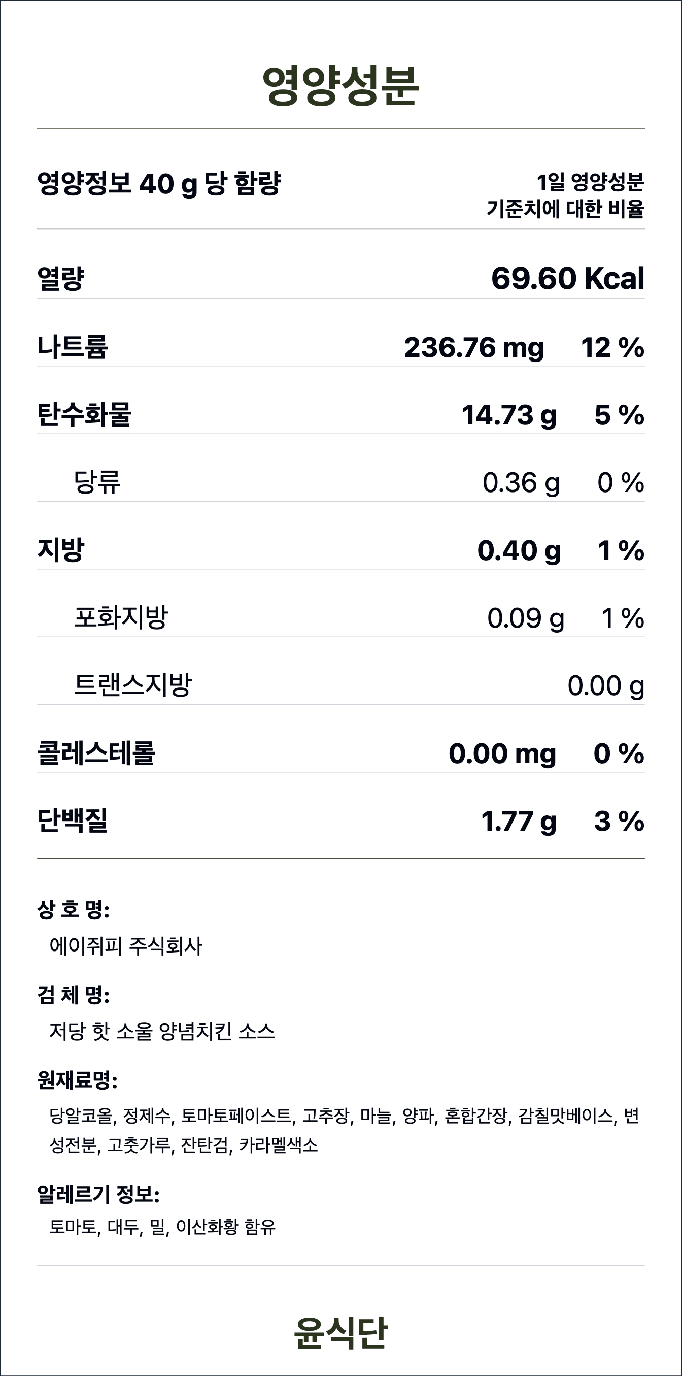 - 본 상품은 식품 특성 상 단순 편심으로 인한 교환 및 반품이 어렵습니다. 기호에 맞지 않을 시, 이미 수령한 상품을 제외한 남은 정기배송 일자에 대한 취소처리가 가능합니다. 취소를 요청하실 경우 윤식단 공식 홈페이지 채널톡을 통해 문의 부탁드리겠습니다.