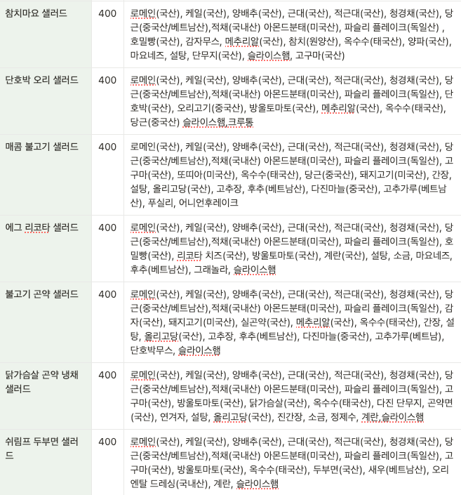 - 고구마+현미밥 옵션시 기본구성에 [ 고구마 ]가 포함 된 메뉴에 한해서만 반영됩니다.