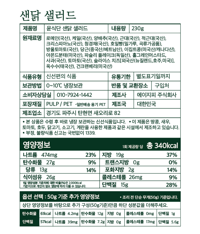 - 본 상품은 고객 직접 취소가 어렵습니다. 수령 전 주문 취소 및 정기배송 진행 도중 환불을 요청하실 경우 윤식단 카카오채널 통해 취소를 요청해주세요.